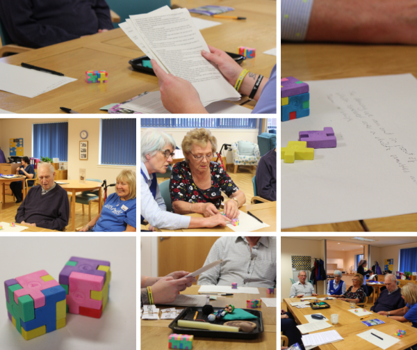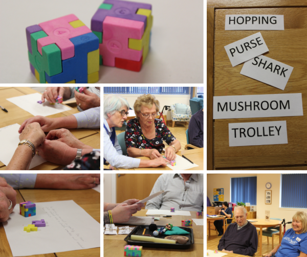 After listening to everyone’s weird and wonderful creative answers we moved on to our next activity. Cubes! Two cubes were placed in front of each patients, one whole and one was dismantled into 5 sections. Using the whole cube patients had to try and put the other back together, using the colours and numbers as guidance. The aim of this activity is to help with hand and eye coordination. It is a helpful task to gain problem solving skills and thought process.