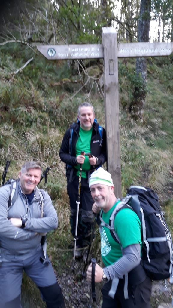 “Day two and an early rise after a noisy night. Heavy rain battering off the tents didn’t quite drown out the snoring of one or two of the group. It was at least a comfort to know somebody was getting a sleep. So we’re off to Beinglas Farm! Father Frank admits to the team that he thinks this is probably going to be the most challenging of the 5. How right was he. We enjoyed the walk to Rowardennan however we took the low road and had to limbo and vault some trees left grounded by the aftermath of the storm.