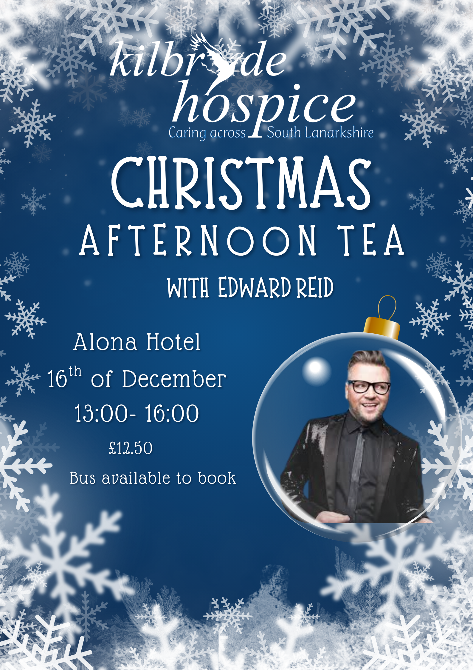 We’re thrilled to invite you to the Kilbryde Hospice Afternoon Tea at the stunning Alona Hotel on Tuesday 16th December — hosted by the incredible Edward Reid! 🌟